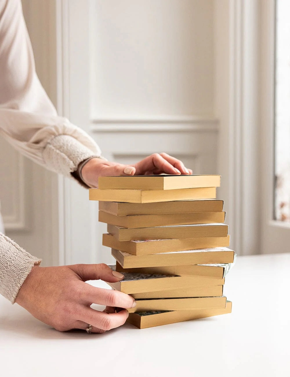Illustrated by Christine De Carvalho , Featuring 100 heavyweight tear off blank pages. Bound with a gummed edge, and full heavyweight wrap around cover. Removable Gold Foil printed Bellyband and gold foil and gilded edges.