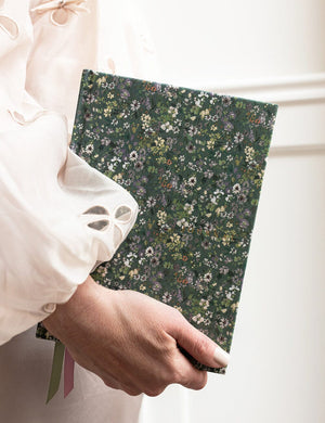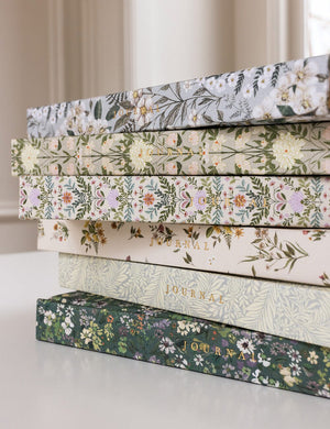 Bespoke Letterpress' new beautiful linen bound journal features gold foil printing, gold gilded edges, decorative internal covers, satin ribbon markers and two hundred heavyweight pages printed on chlorine-free pure wood fibre paper.