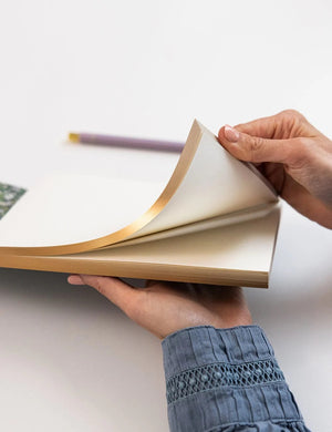 Illustrated by Kelly Ventura, Featuring 100 heavyweight tear off blank pages. Bound with a gummed edge, and full heavyweight wrap around cover. Removable Gold Foil printed Bellyband and gold foil and gilded edges.