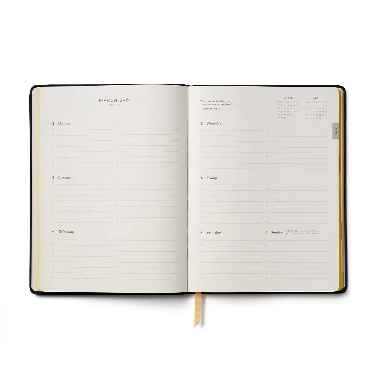 Features monthly views; book cloth cover with embroidery; metallic gold foil detailing