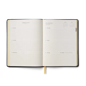 The Planner also features monthly views for big-picture planning and ruled notebook pages for creative expression, all presented in Rifle Paper Co.'s signature style.