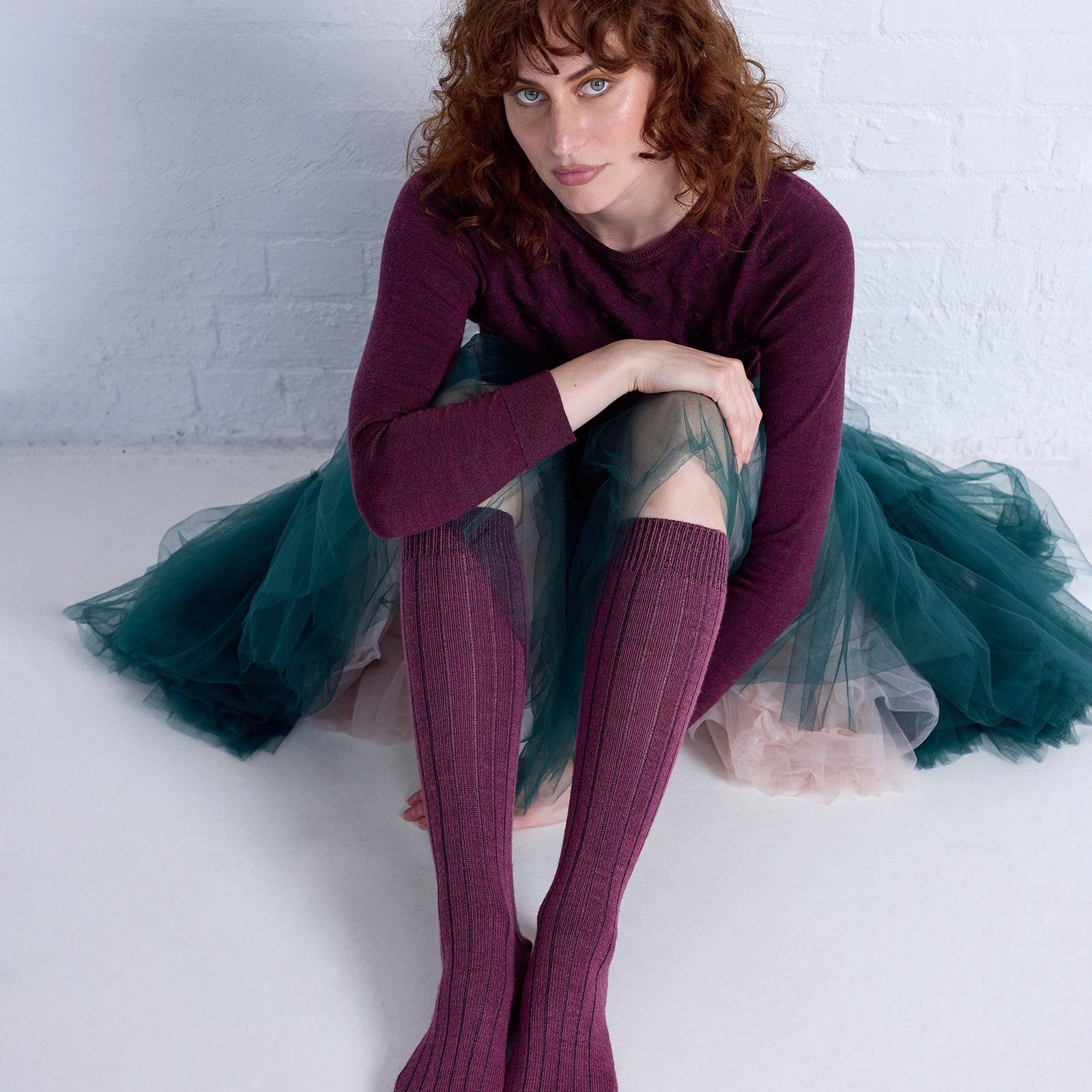 Tightology Long Rib Wool Socks / Mauve $39.00