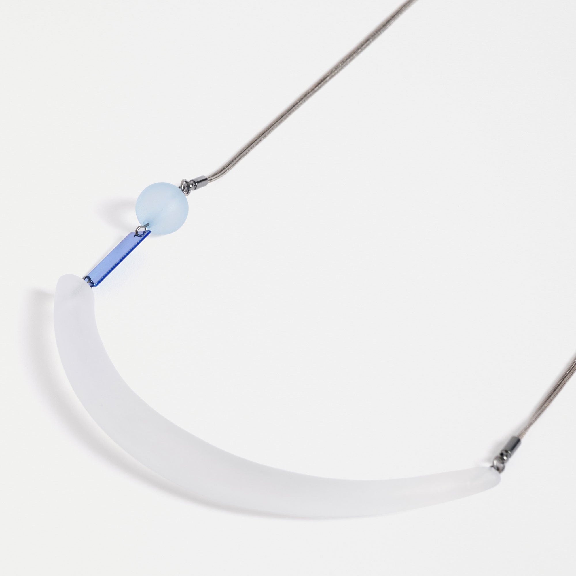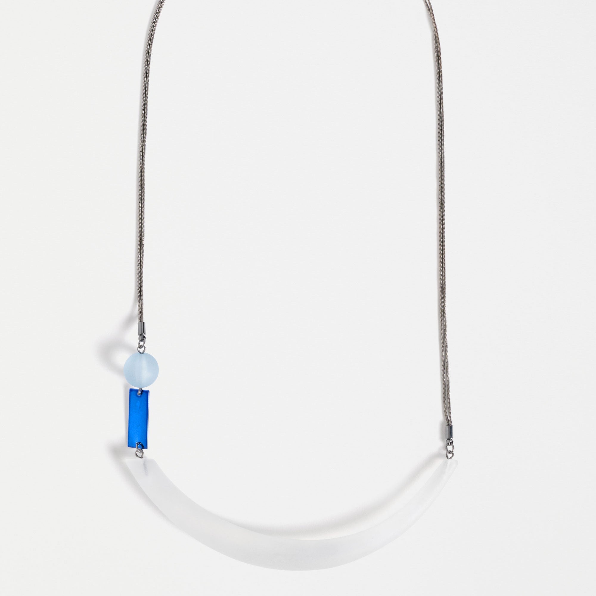 The Arens Necklace adds interest and artistic flare to your outfits, featuring sculptural pieces crafted from resin fixed to a doubled fine mesh chain with anodised flat rectangular shape. This mid-length necklace with asymmetric statement bead is lightweight and perfect for all-day styling. Coordinates with Arens Drop Earring.