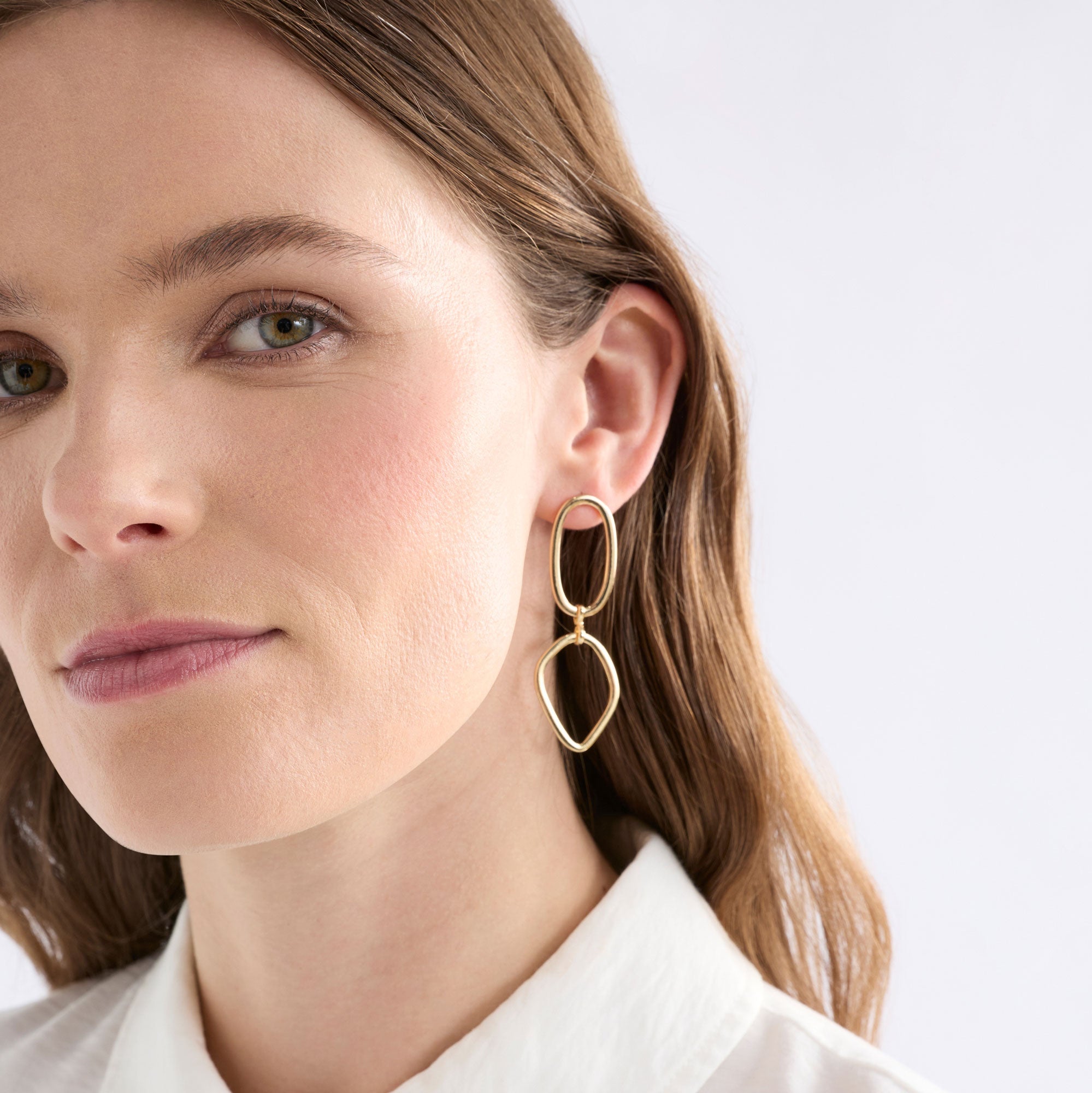 Add some understated elegance to your outfits with the Boden Drop Earrings. Comprised of two organic oval and teardrop shapes, crafted from a shiny fine metal connected via jump ring to form a long drop earring. The bottom shape moves around the jump ring creating asymmetry and dynamic movement. These lightweight, simple earrings make styling easy with their classic design and all day comfort. Pair with coordinating Boden Necklace as part of a complementary set.